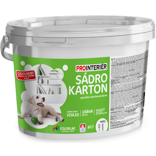 Špeciálna biela matná jemne zrnitá disperzná interiérová maliarska farba na okamžité použitie. Sadrokartón sa vyznačuje vysokou odolnosťou oteru za sucha, dobrou odolnosťou oteru za mokra (umývateľnosťou), vynikajúcou paropriepustnosťou a vysokou krycou schopnosťou. Sadrokartón má hlavné využitie predovšetkým pri maľovaní veľmi hladkých plôch ako je sadrokartón, kde vytvára jemnú štruktúru štukovej omietky, teda zjednocuje povrch. Sadrokartón je určený tiež na použitie na murivo, vápenné, vápennocementové, sádrové a sanačné omietky, betón, drevovláknité a drevotrieskové dosky, tapety a na pretieranie starých náterov.