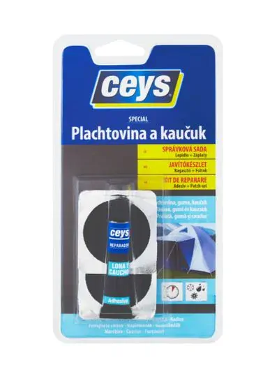 Ceys Plachtovina a kaučuk 7ml - rýchlo a účinne utesňuje a opravuje malé diery a trhliny v plachtovine a na povrchoch z gumy a kaučuku