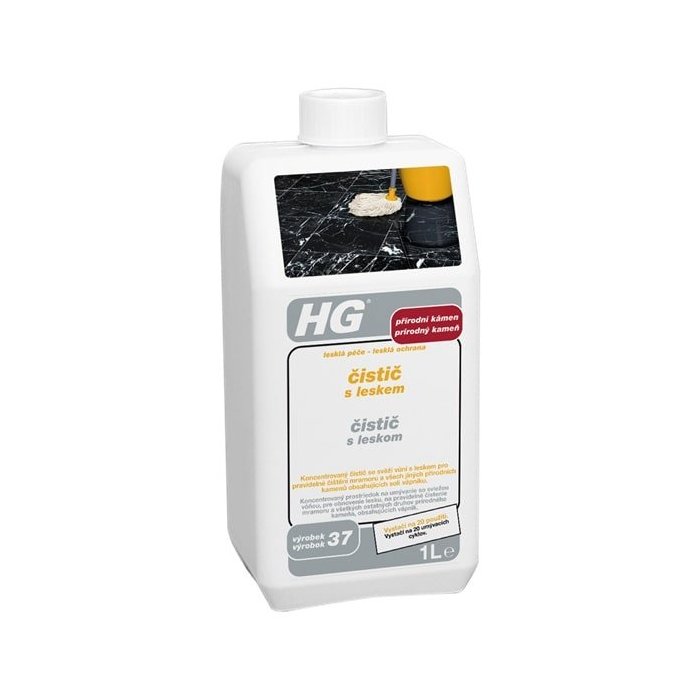 HG čistič s leskom (lesklá ochrana na mramorové podlahy) je koncentrovaný prostriedok na umývanie s príjemnou sviežou vônou, špeciálne vyvinutý na pravidelné čistenie mramoru a všetkých ostatných druhov vápencového prírodného kameňa. Je vhodný pre neošetrované podlahy, ako aj pre podlahy ošetrené produktom HG ochranný film s leskom.