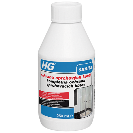 Čistiaci prostriedok na sprchovacie kúty značky HG chráni sklenené výplne, dlaždice, kohútiky a iné povrchy pred nečistotami. Vďaka vysokej účinnosti čistiaceho prostriedku HG ochrana sprchovacích kútov bude na udržiavanie čistoty postačovať menej časté umývanie. Čistiaci prostriedok HG ochrana sprchovacích kútov zjednodušuje umývanie sprchovacích kútov. Ideálny čistiaci prostriedok na odstraňovanie vodného kameňa zo sprchovacích kútov.