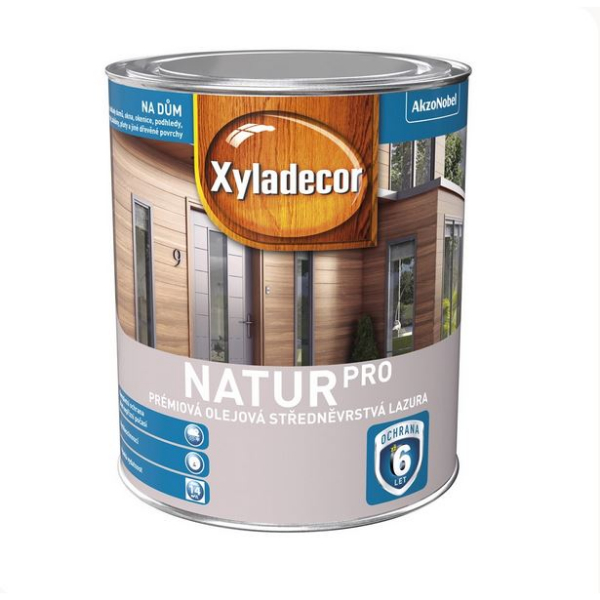 Xyladecor Natur PRO je prémiová olejová strednovrstvová lazúra na vodnej báze pre použitie v interiéri aj exteriéri. Vytvára silný elegantne polomatný saténový film na povrchu dreva, ktorý chráni proti UV žiareniu a nepriazňam počasia. Rýchloschnúci. Náter odolný proti bežným čistiacim prostriedkom v domácnosti. Krémová konzistencia produktu uľahčuje aplikáciu, lepšie sa rozotiera a viac penetruje do dreva. Zvyšuje priľnavosť ďalšieho náteru. Zvýrazňuje štruktúru dreva a nezapácha. Zabezpečuje až 6 rokov ochrany dreva.